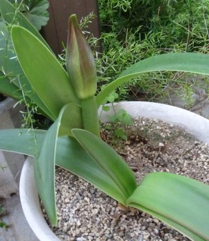 アマリリスの蕾が上がってきました。どちらかというとあまり興味が無く水以外面倒をみなかったけど、多肥を好み、1か月に2回ほど液肥をあげる、なんだって。明日あげよう。