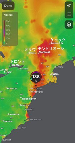 (カナダの山火事による大気汚染に対処しています)とのことでAQI(Air Quality Index