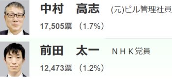 参院選では、私の選挙区以外の立候補者は知らないことが多いわけですが、YouTubeやニュースで当落と講評が載ってるのを見て、オヤと思うことがある。