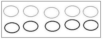 「長径2.0、短径1.5の楕円が5個要る」とのことで、ペイントで楕円を1個作り、それを4回コピペ、楕円のサイズを決めようと印刷設定...ん?そうすると紙サイズになっちゃう。やり直し!まず紙(キャンバス)サイズを2.1×1.6にして、そこに目いっぱいの楕円を描き、それを4回コピー、はい出来上がり。想像だけじゃ間違えるね。