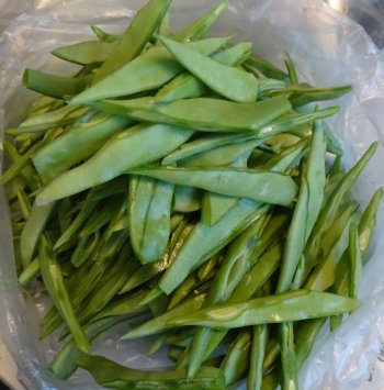インゲンはチャック付き小袋いっぱいとこれだけ。この袋分をとりあえずゆでました。鍋いっぱい、ざるいっぱいでしたね。