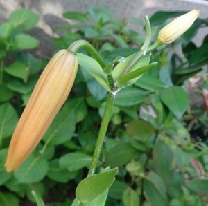 公園百合の蕾が色付いてきました。赤のオニユリだったらどうしよう、という気分です。