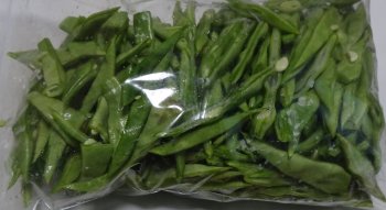実は今日長姉からも野菜が届いたんです。タマネギ、インゲン、大蒜。インゲンをひたすら刻んでチャック付き袋に2つ。チャイコフスキーのバイオリン協奏曲をかけながら、ダラダラと非常にのろく刻みます。