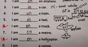 では「 on は大きい乗り物で中で歩ける、in は小さい乗り物で中で座ってるだけ」と説明してるのだが、