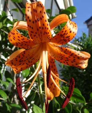 ヒェー!公園百合の正体はやっぱりオニユリだったよ。この花弁の反り具合が何とも言えないね。