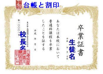 卒業証書は右の画像のようになっていて、印以外はいくらでも偽造できます。校長印もわざわざ印鑑を作らなくても似たような印が押されていたらチラ見では分からないかも。ただ、そこまでしたら悪質ですよね。