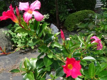 サンパラソル・ルージュです。「摘芯剪定不要でコンパクトにまとまる」とサントリーさんは言うんですけど、全然まとまりません。