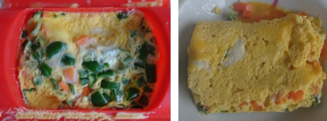 卵がルクエにくっ付かない?と試しました。容器目いっぱいでレンジに運ぶまでにこぼしたぁ。レンジ3分。ルクエを逆さまにして皿に落としたのが右画像。卵はルクエにくっついて残りました。味のほうは人参が半生で固くゴリゴリしてましたね。目的からしたらこれは失敗です。