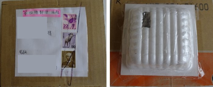 百合のムカゴが届きました。パッキングがなかなかユニークで、段ボールと納豆パックで出来ています。表にちゃんと「第四種郵便」と書いてあり、裏に中身が見えるように穴が開けてあります。中のムカゴはサランラップで包みセロテープで留め、それを更にセロテープで納豆パックに固定してありました。ムカゴは早速ポットに埋めました。