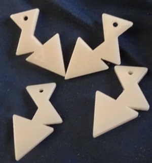 「3連三角穴あきパーツ」として売られていました。家に持ち帰って中身を空けると、「4個+下の三角がない欠陥品1個」が入っていました。(泣き寝入りはしないぞ)と交換に行って、新品の中身も確認して満足して帰りました。そして家で空けると何と4個しかありません。これって4個入りなんですかね?すると欠陥品1個はオマケだったの?つまりわざわざ交換する必要はなかったのね。