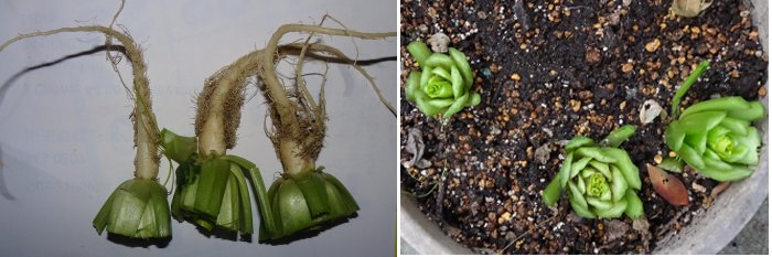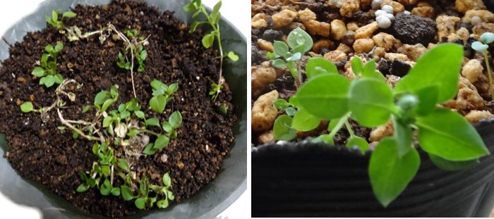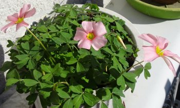 左;オキザリス・パーシカラーにいくつか花がついてるのだけど株の元気が無いので植え替えた。