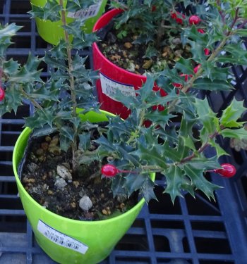 検索するとどうも「姫ヒイラギ」としても売られているようですが、実の着き方が違います。これ、人工実らしいのだけど、それを言わずに売っていいものなの?