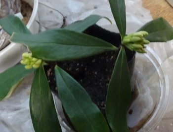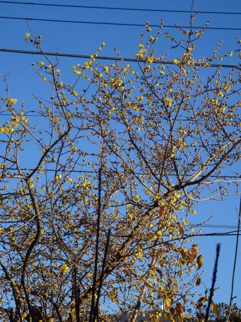 同じ品種と思われるのに1月末頃に咲く個体が多いんですよね。芳香のある花を冬に咲かせるくらいの知識で園芸店から700円(?)で買ったんですけど、思いがけずお正月に咲く木でよかったです。