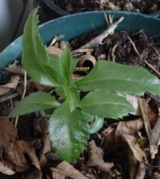 種まきのキミノセンリョウを植え替えました。根土を崩さずに2サイズアップです。植え替え適期は春だそうだから滅茶苦茶ね。これで1年経過、確か3年目で多少実が着く筈なんだけど今年一年で大株になるかしら?現在人差し指くらいの背丈です。