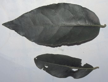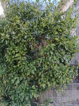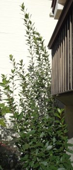 彼女が「立派な月桂樹ね」と褒めてくれたんだけど、私もそう思います。太い枝の葉っぱは超特大だし、わざと虫食いの葉を選んで写したんだけど、こういう虫食いってあまり無いです。売ってるローリエの葉は下くらいのサイズですね。沿道に見かける月桂樹で近寄りたくない程虫食いだらけの葉も見かけます。あれは薬剤散布も剪定もしないからかな?
