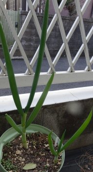 2本同時期に植えたと思われるネギのリボベジだけど生長の差が激しいね。長い方はもう食べてもいいんだけど、まだ冷蔵庫にあるからねぇ。上を切って刻んでおこうかな?
