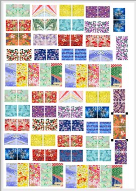 和紙模様の印刷。画像を1.8㎝角に切り取り、コピーして左右反転、「レイアウト印刷」でA4用紙に並べたものです。イヤリングが40セットくらいできますね。そんなに作るかどうかわからないけど、用意しておくといつでも使えるし、失敗しても惜しくないでしょ。