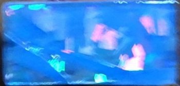 元はホログラムの銀に薄い青の液を載せたものです。夕方写したら光が微妙なピンク、青緑に反射してキレイですね。実際に作ってみないと自分でも予期しない効果が見られるのもネオステンドの魅力かも。