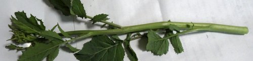 カラシナ採取4回目。蕾があがりつつあります。もう咲いてるのは茎が細く、(もう株が大きくなれないよ)ということなんですねぇ。