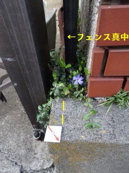先日の測量立ち合いで判明したお隣との境界ですが、縁石の中央に錆びて壊れかかったフェンスがあり、その中央が境界なんですね。右側が我が家なんですが、コンクリートで固めた植え込みがあり、黄色の線以降縁石の端までお隣に出てるんですよね。昔、両方とも同じ不動産屋だったからいい加減なんですよねぇ。中古で買った家だし気付かなかったです。