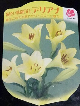 クラブの日、帰途ホームセンターに寄って「黄色い鉄砲百合デリアナ」を2苗買いました。黄色い鉄砲百合なんてあるんですね。