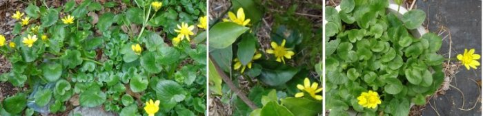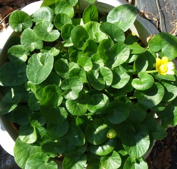 ヒメリュウキンカが零れ種で繁茂しています。発芽が容易で雑草のごとく生えます。