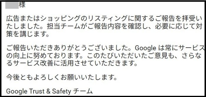 YouTubeのサムネイルが「下着姿の女性二人が便器にかがみこんでいる」写真で、クリックすると1日に書いたサポート詐欺偽警告画面に飛ぶようになっています。似たサムネイル画面が3つも出てきて、(ひど過ぎる)とGoogleに報告しました。以下が返信で、YouTubeを確認したら、その動画は消えたようです。(何故下着姿?洋服が汚れるから?)と考えた私は何とナィーブなことよ。作成者は単純にスケベ心でクリックするのを狙ってただけなのね。