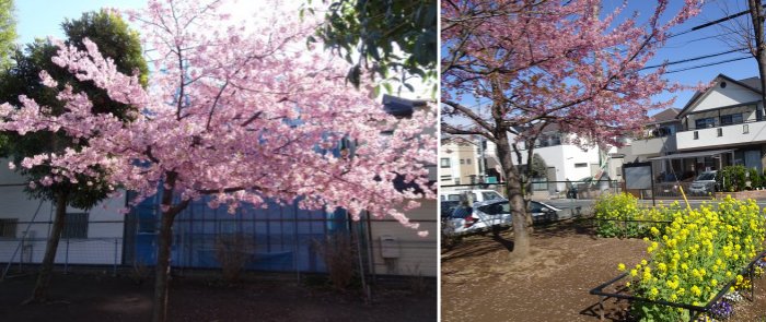 昨日の写真です。近所の公園のカワヅザクラが満開を少し過ぎたくらいでした。菜の花も満開、風に乗って香りが運ばれてきます。