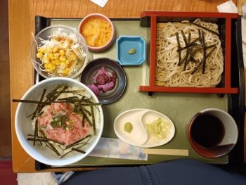 丼定食だったかな、丼はかつ丼などから選択、麺類も冷暖、うどん・そばから選択できます。久し振りにそばを食べた。