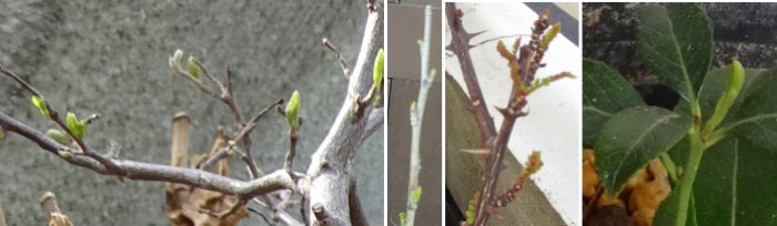 左からエゴノキ、ムクゲ、サンショウ、白馬酔木。エゴノキは去年枯れたかと保険の為種蒔きまでしました。芽吹いたので捨ててしまいましたけど。サンショウはアゲハ用だから枯れてもいいのだけど。chatGPTに訊いたらアゲハの好みはミカン