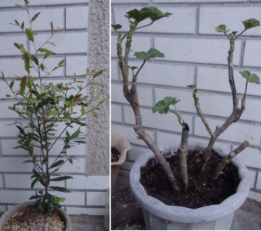左はミッキーマウスノキです。鉢が小さめなので1周り大きくしました。