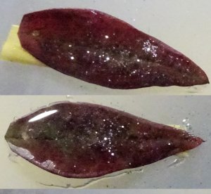 光沢紙が無くなったのでダイソーへ。A4サイズが売ってなくて私は不機嫌。(もういい!)と普通紙に印刷してしまいました。貼り合わせた左側が普通紙です。全体的に少しぼやけて色がくすんでいるのがわかりますか?