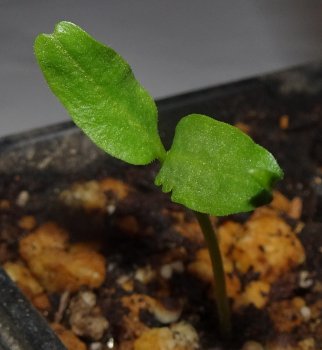 同じ用土で鉢に植え替え、戸外に出し、もう蓋をしていません。1年経過してもこのサイズなのが何とも言えない。(^-^;