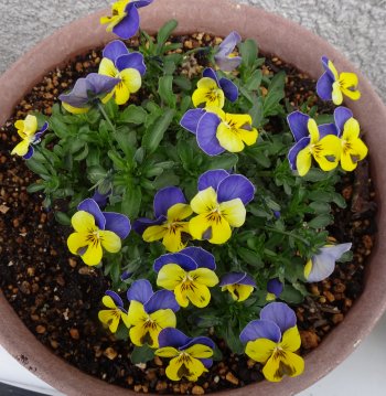 100円未満のビオラがここまでこんもりしてきました。5月上旬までは咲き続けると思うので鉢いっぱいにこんもりしてくれるかと期待しています。
