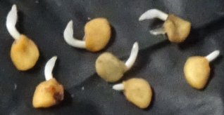 鑑賞用トウガラシ、パープルフラッシュの抱っこ蒔きです。30粒ほどの種で発芽したのはこれだけです。自家採種にしても発芽率が悪いですね。雨降りなのでポット植えできず明日まで抱っこです。